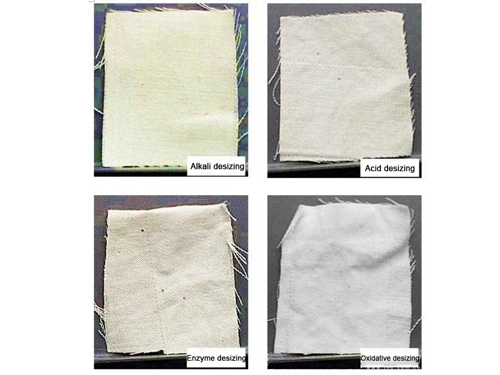Enzymatic desizing: Uses α-amylase to hydrolyze starch without damaging the fibers; fast and efficient.