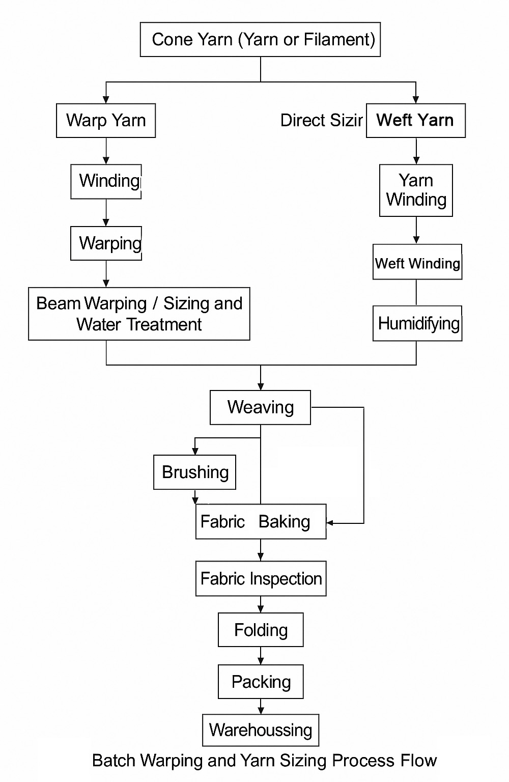 Yarn is passed through a specially formulated sizing solution via immersion, squeezing, and drying. A portion of the size coats the yarn surface forming a strong film that smooths the surface and suppresses hairiness. Another portion penetrates the yarn, bonding the fibers to enhance cohesion and strength.