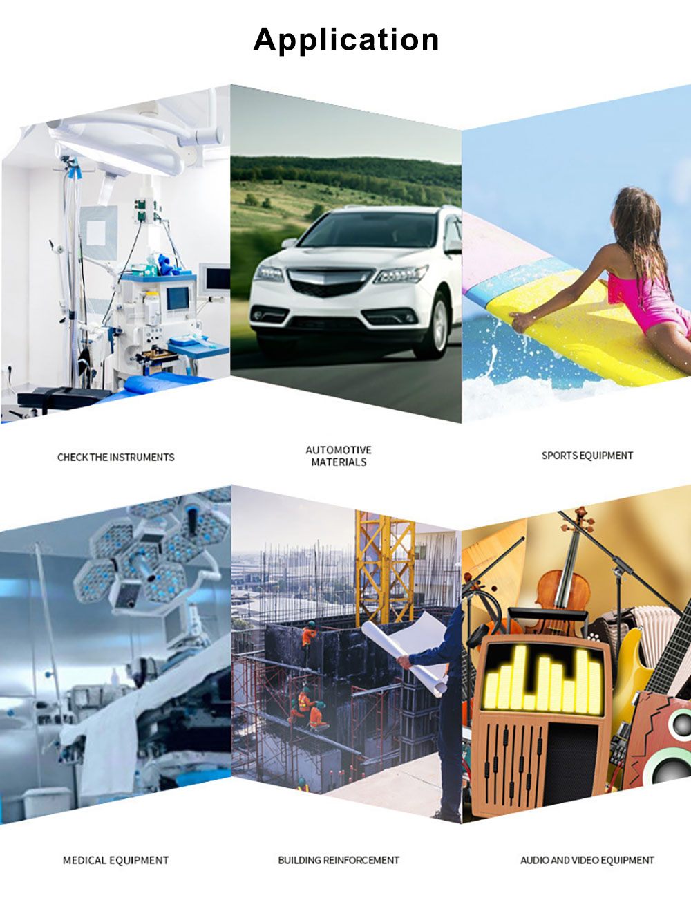 2. Sports equipment: lightweight and durable products such as auto parts, motorcycle parts, fishing rods, baseball bats, skis, speedboats, badminton rackets, high-end bicycle racks, tennis rackets, skis, etc.